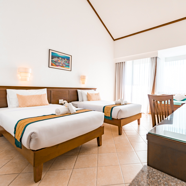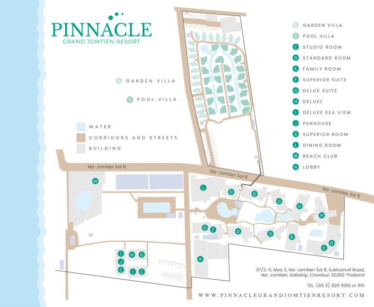 Pinnacle Grand Jomtien, a beachfront resort comprises of low-rise resort buildings amidst tropical garden and ocean breeze. With 345 rooms, we offer room types from spacious Family rooms, Garden View rooms, Deluxe Ocean View room, Pool Accessed Villas, and Garden Accessed Villas. Extra beds and baby cribs are also available for family members. All 345 rooms in the resort offer free WiFi and TVs with satellite channels. Refrigerators, minibars and free bottled waters are among the other amenities available to guests. On the lazy day you can call our restaurant for a room service which serves both western and traditional Thai food. Enjoy the beachfront resort experience – a home away from yours.
